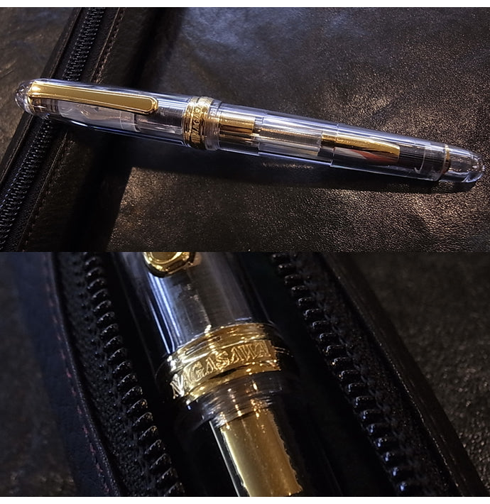 As the name suggests, this is a transparent model of the Platinum fountain pen #3776 Century produced by Nagasawa Bungu Center.